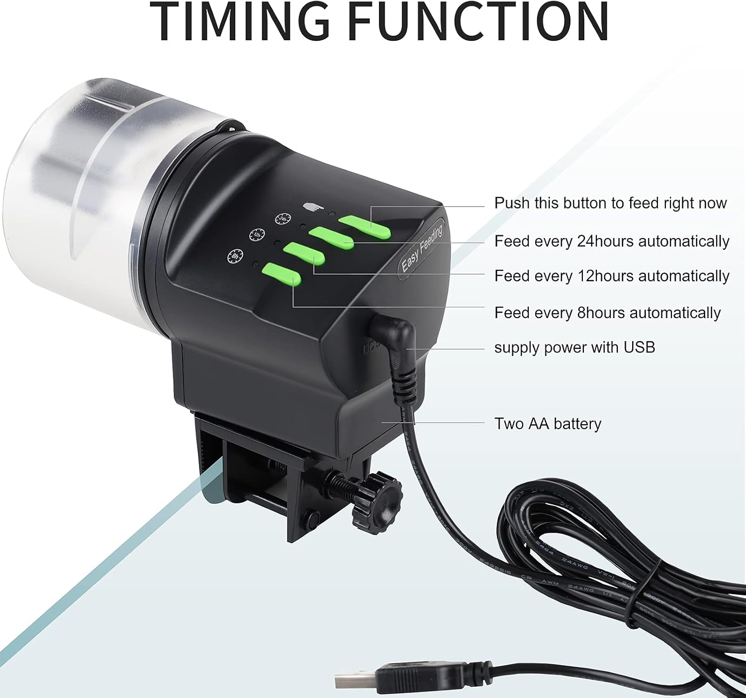 Flexible Mounting Options: Easily attach to the aquarium edge using the stent (for tanks without hoods) or fix on top of the hood with the funnel base (for covered tanks).