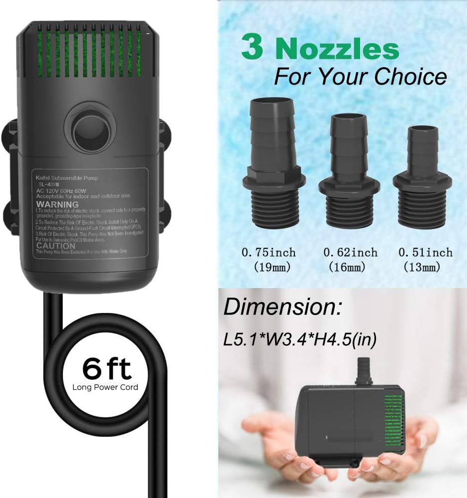 Versatile Applications: Ideal for aquariums, hydroponics, fountains, ponds, spouts, and other water features.